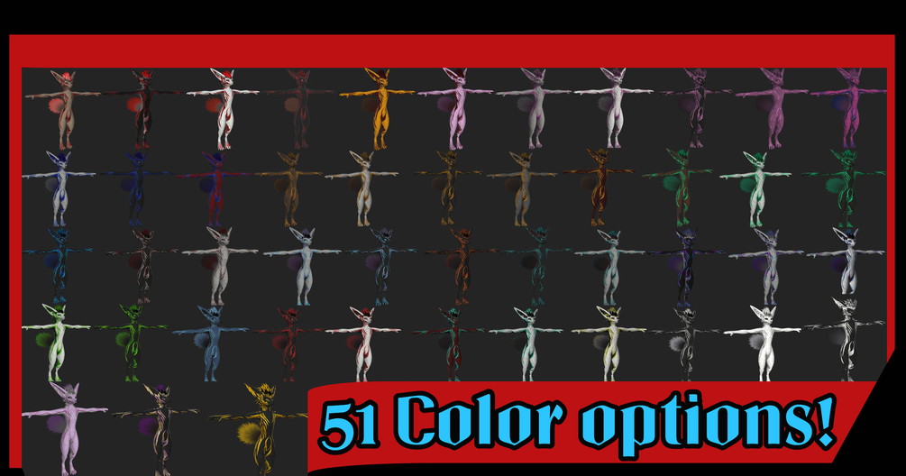51 Colors at 4k resolution, 5 Emissions, 2 Gold Textures, Detailed eyes.